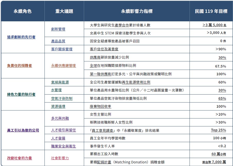 台積電ESG執行架構以及永續影響力指標如下圖示。